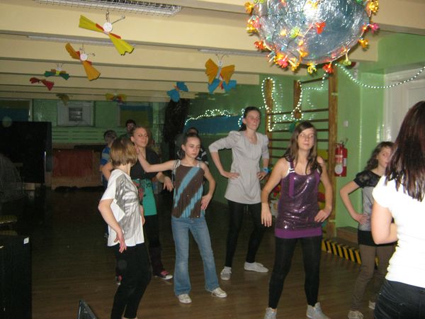 Po południu na dyskotece dla gimnazjalistów nie było już tak bajkowo, bo nikt się przecież nie przebierał(!) ale i nasi starsi koledzy wyśmienicie się bawili, do czego na pewno przyczyniła się obecność prawdziwej pani animatorki zabaw.