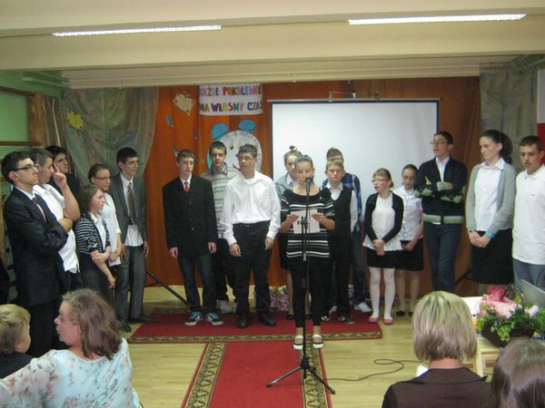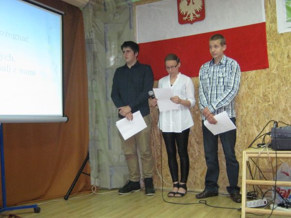 No to skąd smutek w takim dniu? Ponieważ żegnamy dzisiaj naszych najstarszych kolegów i koleżanki z klasy III gimnazjum. Byli z nami wiele wiele lat, a teraz po raz ostatni przyszli, by się z nami pożegnać i rozpocząć nową drogę w życiu. Marysiu, Magdo, Jarku, Konradzie, Kamilu, Przemku, Mariuszu, Kamilu, Szymku, Januszu obiecujemy: bedziemy o Was pamiętać! Życzymy Wam szczęścia i sukcesów w nowych szkołach i w dorosłym życiu. I Wy też wspominajcie tylko najpiękniejsze chwile, spędzone w naszej szkole.