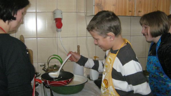 U nas, w Polsce, pączki i faworki, a w Wielkiej Brytanii...zgodnie z brytyjską tradycją, w ostatni dzień karnawału odbywa się powszechne pieczenie naleśników. Tą tradycją postanowiła podzielić się z nami pani Monika – nasza "anglistka". Zaprosiła nas do sali gimnastycznej – tam obejrzeliśmy ciekawe filmy, dotyczące święta naleśnika. A potem odbyły się wyścigi naleśnikowe (zobaczcie zdjęcia - zabawa była naprawdę super!)