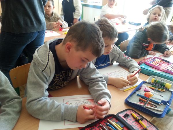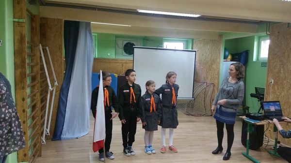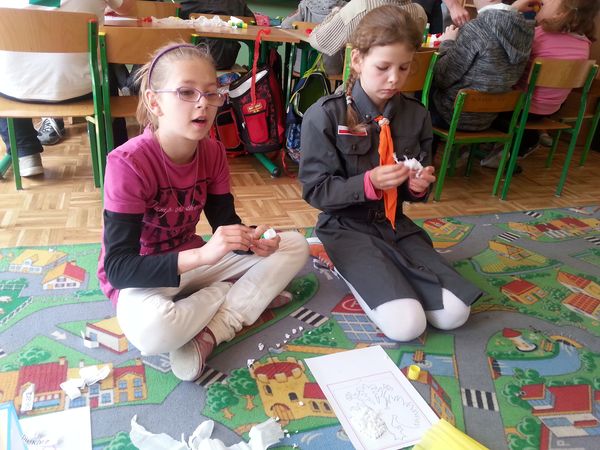 Młodsi uczniowie wykonywali prace plastyczne, związane z symbolami narodowymi. Obejrzeli również bardzo ciekawy film o początkach Państwa Polskiego.