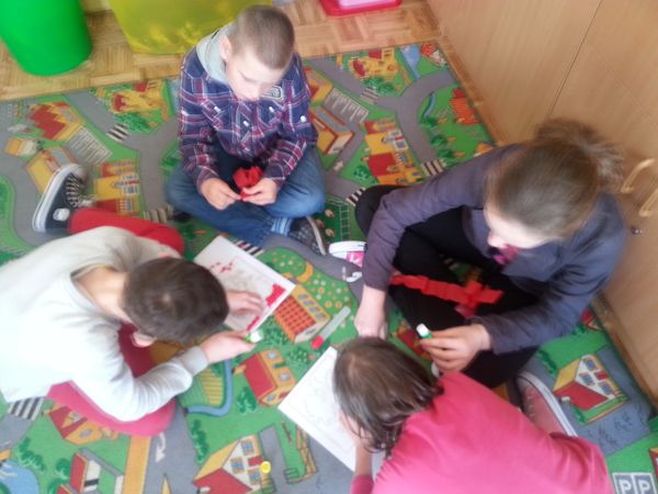 Później w dwóch grupach realizowaliśmy zadania, związane z majowymi świętami.