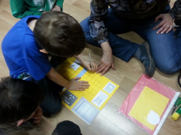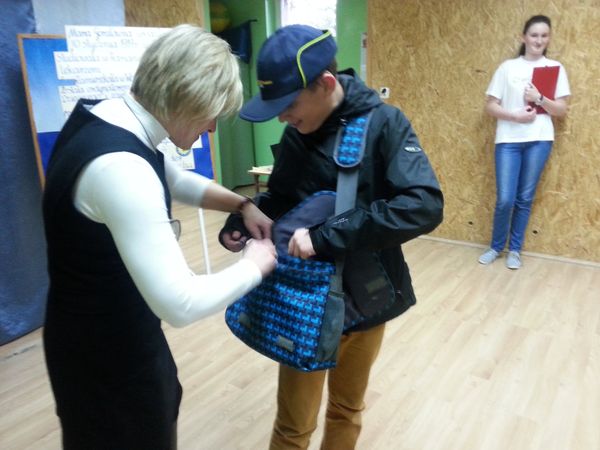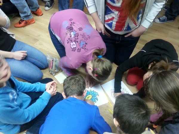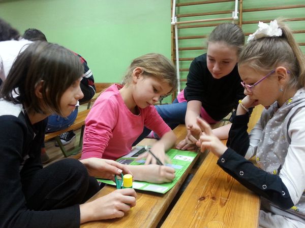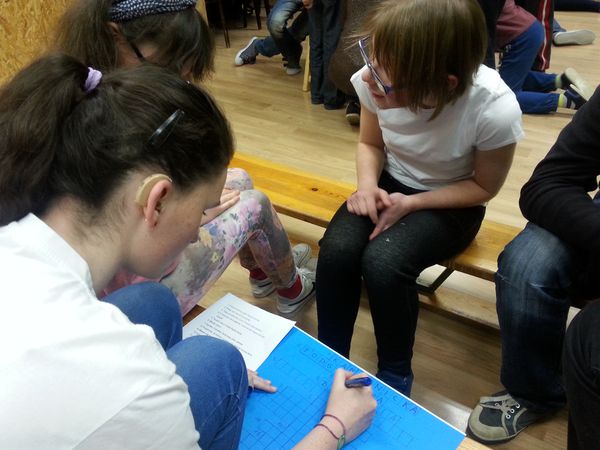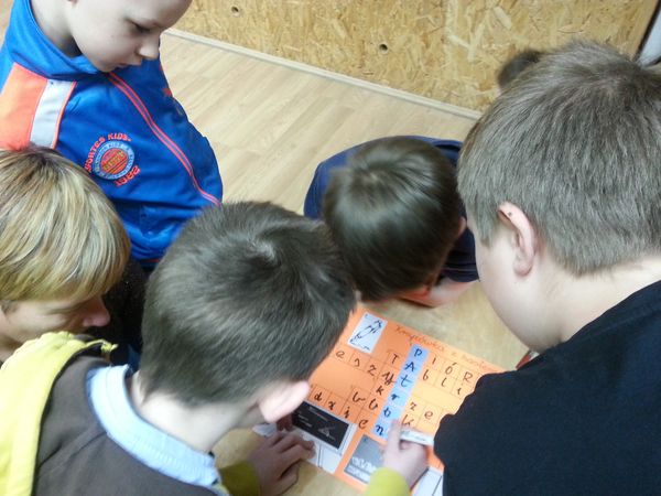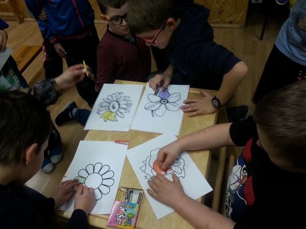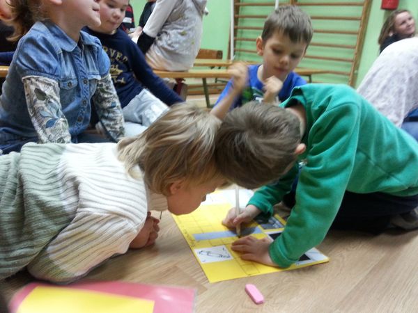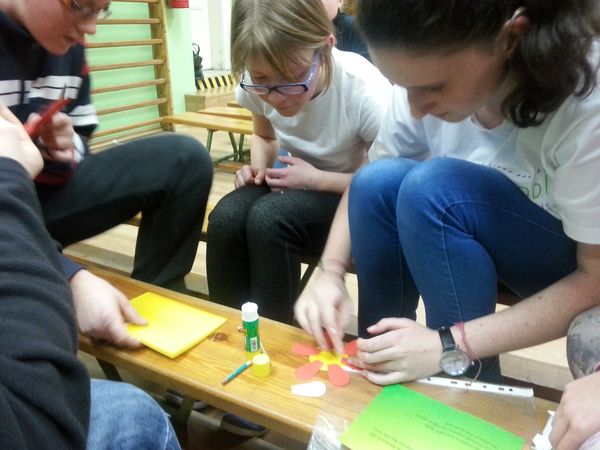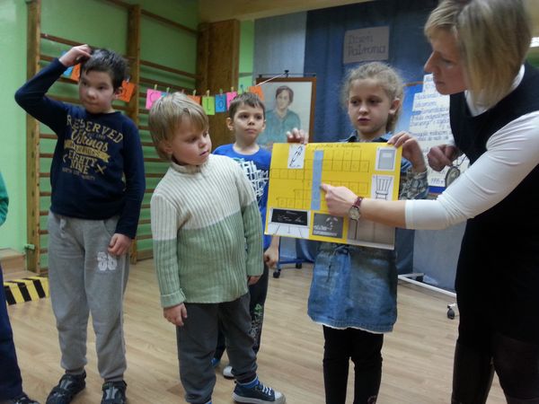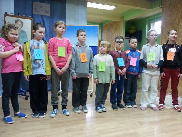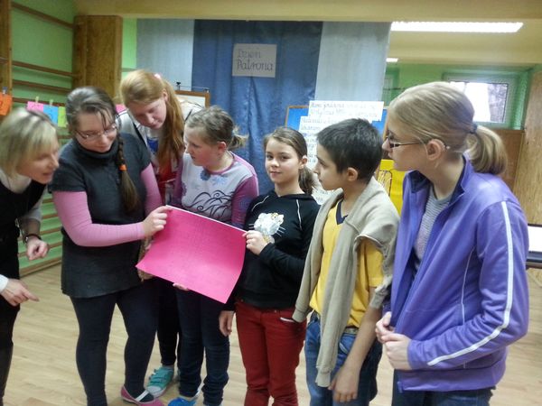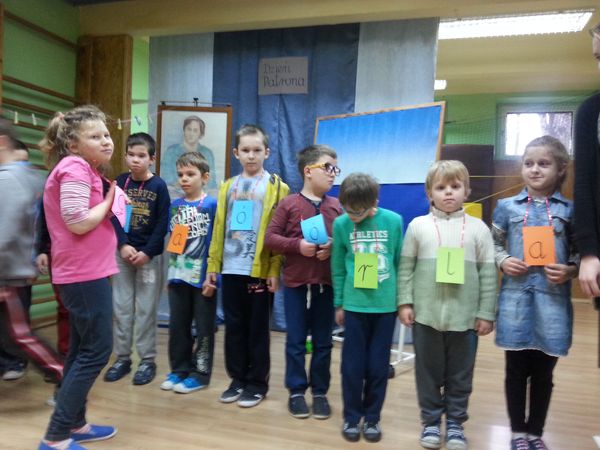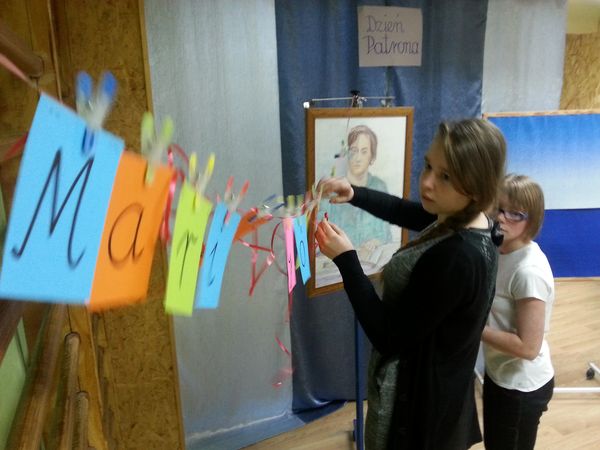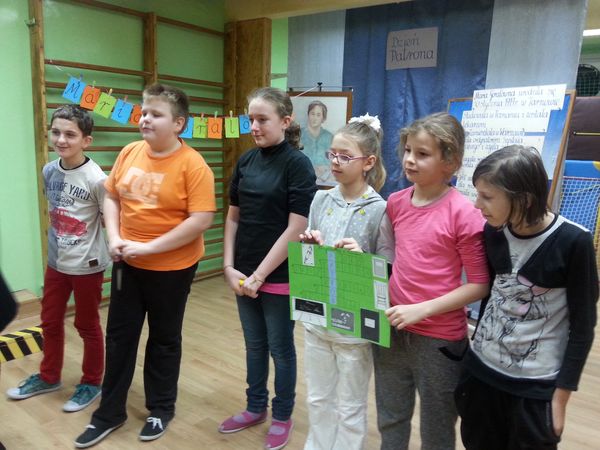Najpierw wspólnie rozwiązywaliśmy krzyżówkę. Później odwiedził nas listonosz i wręczył każdej klasie list z zadaniem do wykonania. Każde zadanie związane było z życiem i pracą naszej Patronki.