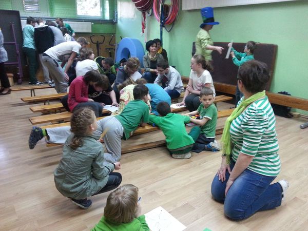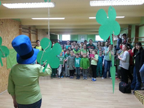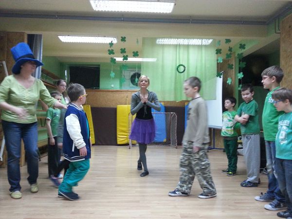 Zaproszona tancerka pani Ewa, pokazała nam irlandzki taniec. Potem wszyscy tańczyliśmy w takt irlandzkiej muzyki. Były konkursy, rebusy a na zakończenie kosztowaliśmy wodę z zielonych rzek Irlandii.