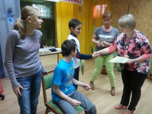 Później, specjalnie dla rodziców, nasi "aktorzy" ze szkolnego koła teatralnego zaprezentowali rodzicom przedstawienie "Kolory". Swoją obecnością zaszczycił nas pan poseł Jacek Falfus. który wspólnie z nami oglądał przedstawienie, a następnie zaprosił uczniów wyjeżdżających do Warszawy na zwiedzanie Sejmu RP oraz Stadionu Narodowego.