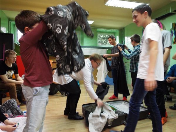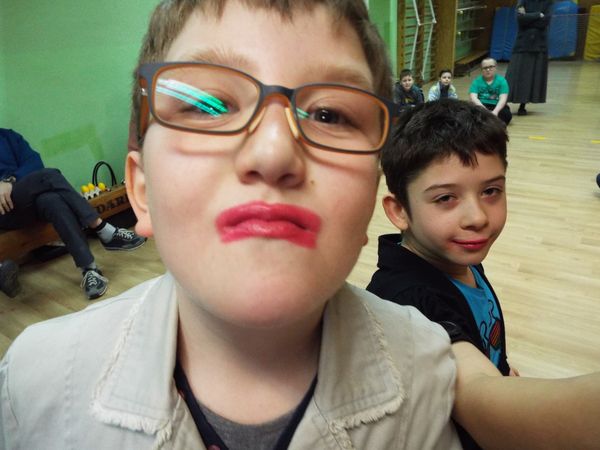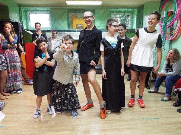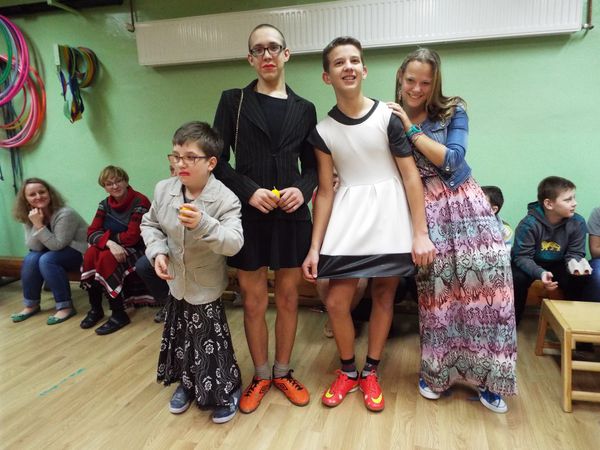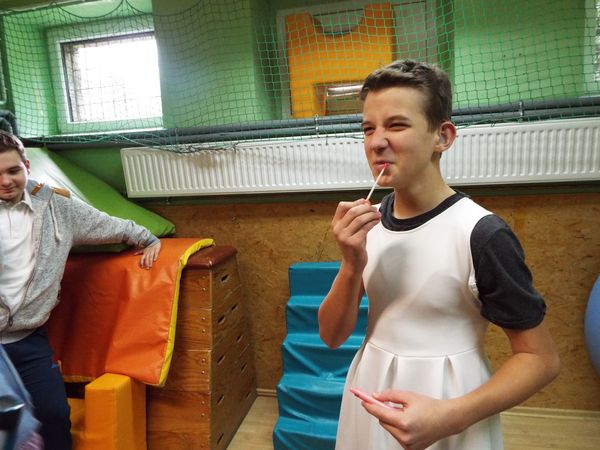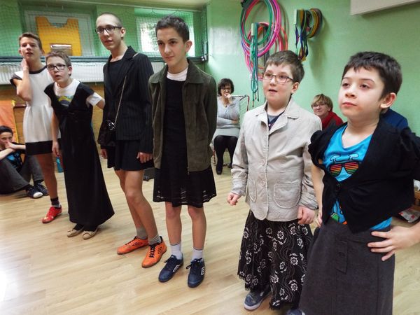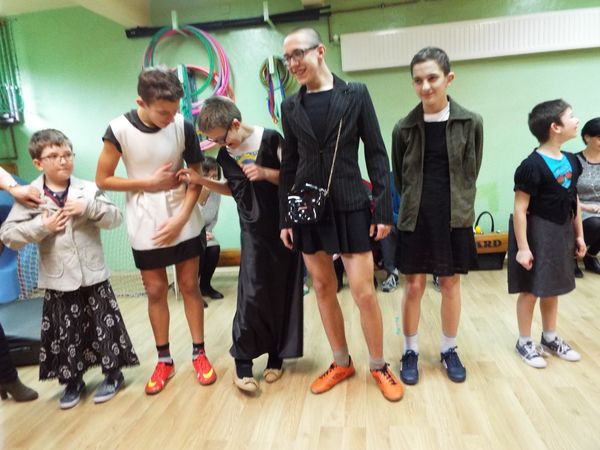 Chłopcy wzbudzili zachwyt i zebrali gromkie brawa od wszystkich koleżanek. Najlepiej w damskich strojach prezentowali się; Karol Drozdek, Szymon Sapeta i Dawid Morawiec.
