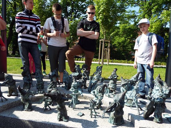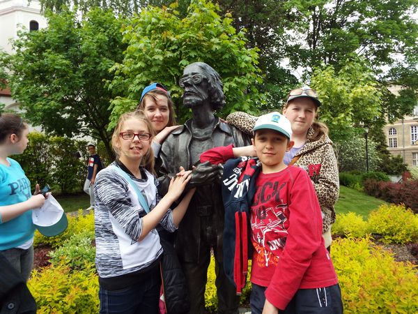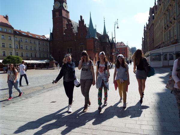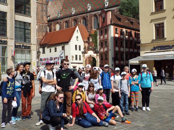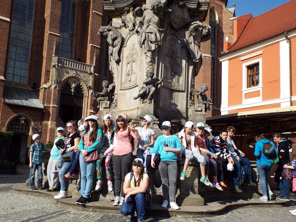 W dniach 11-13 maja odbyła się wycieczka do Wrocławia i Opola. Zwiedzanie rozpoczęliśmy od nowego lotniska we Wrocławiu. Następnie oglądaliśmy bardzo duży obraz (114m długości i 15m wysokości) „Panoramę Racławicką’’, którą 122 lata temu namalowali Wojciech Kossak i Jan Styka. Potem widzieliśmy Katedrę i dużo zabytkowych kościołów w najstarszej części Wrocławia – na Ostrowie Tumskim. Potem spacerowaliśmy po Ogrodzie Japońskim podziwiając ciekawą roślinność. Wieczorem byliśmy na piękne oświetlonym Wrocławskim Rynku. Wszystkim podobała się postać nima przebrana za anioła i teatr cieni w oknach kamienicy inscenizujący sceny z „Pana Tadeusza”. Na wycieczce zobaczyliśmy też Halę Stulecia z 1913r., byliśmy na Uniwersytecie Wrocławskim w Auli Leopoldina. Kolejnym punktem programu było zwiedzanie ZOO. Duże wrażenie wywarło na nas wspaniałe Afrykanarium, mogliśmy być w otoczeniu pływających morskich zwierząt i podziwiać bogactwo podwodnego świata. Kolejnego wieczoru podziwialiśmy kolorowe, grające fontanny. Program wycieczki był bardzo bogaty, kolejnego dnia wyjechaliśmy na 49 piętro najwyższego budynku w Polsce – Sky Tower, skąd podziwialiśmy piękny Wrocław. W drodze powrotnej odwiedziliśmy Opole. Tam oglądaliśmy amfiteatr i szliśmy Aleją Gwiazd. Widzieliśmy też Katedrę i groby Piastów Śląskich. Wycieczka była fantastyczna, było bardzo wesoło.