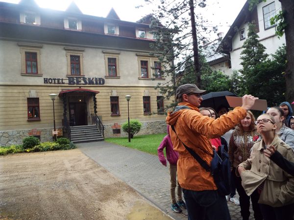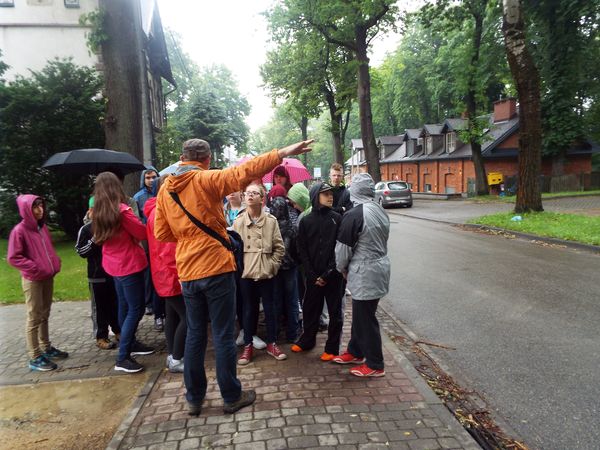 W poniedziałek 20 czerwca klasy starsze wybrały się na krótką wycieczkę do Cygańskiego Lasu. Tam dąłączył do nas pan przewodnik Jakub Krajewski. Poznaliśmy dzięki niemu historię nazwy tego regionu. Potem pan Jakub pokazał nam najciekawsze budynki w tej okolicy. Opowiadał o ich historii, o ich właścicielach, o tym co zrobili dla Bielska. Pokazywał nam stare fotografie, na których mogliśmy zobaczyć ludzi z przed 100 lat, jak się ubierali, jak żyli, jak wyglądały hotele i restauracje. Mogliśmy także, zobaczyć zdjęcia i ilustracje z tramwajami, które do 1971 roku jeżdziły po ulicach Bielska-Białej. Dowiedzieliśmy się o skoczni narciarskiej, torze saneczkowym i kąpielsku.