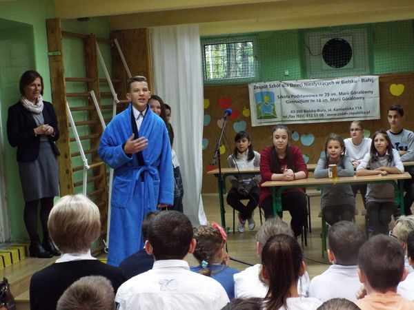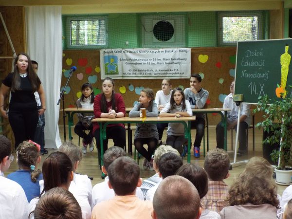 Dzień przed Świętem Edukacji, 13-ego października, zebraliśmy się wszyscy na sali gimnastycznej aby uroczyści złożyć życzenia w wszystkim Pracownikom naszej szkoły z okazji ich święta. Uczniowie z klasy VI i II gimnazjum przygotowali część artystyczną. Najmilszym momentem uroczystości była Gala Oskarowa, w której każdy z pracowników szkoły otrzymał swojego Oskara w wybranej kategorii.