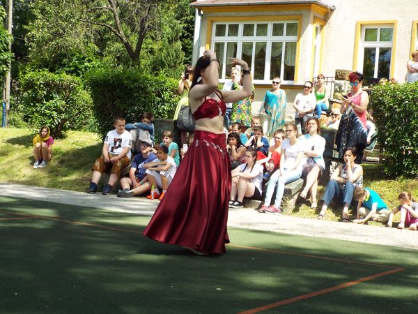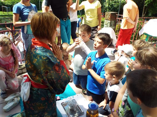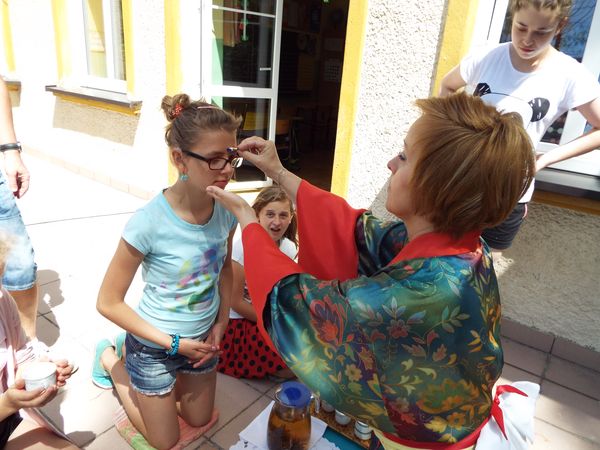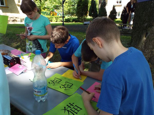 Dalsza część pikniku to "szaleństwa" w naszym pięknym szkolnym ogrodzie. Dzięki zaproszonym gościom mogliśmy i trochę poćwiczyć i trochę też potańczyć. Były również inne atrakcje, takie jak poznawanie chińskich znaków i słów, degustacja herbaty. Wszystko to przy muzyce i w pięknym słońcu – czyli w prawie azjatyckich klimatach.