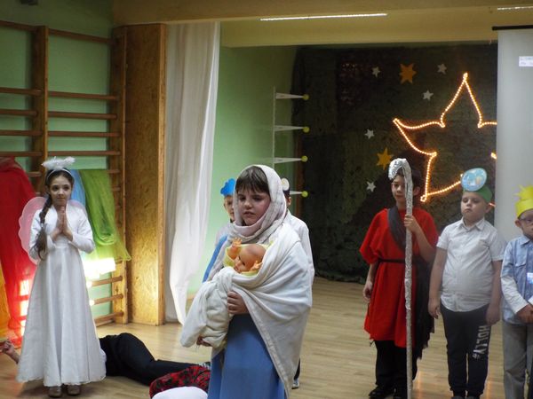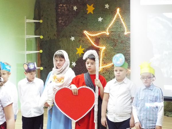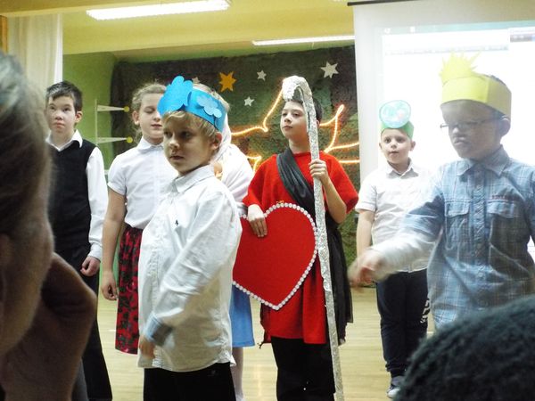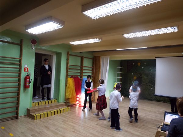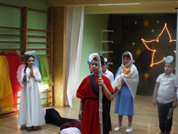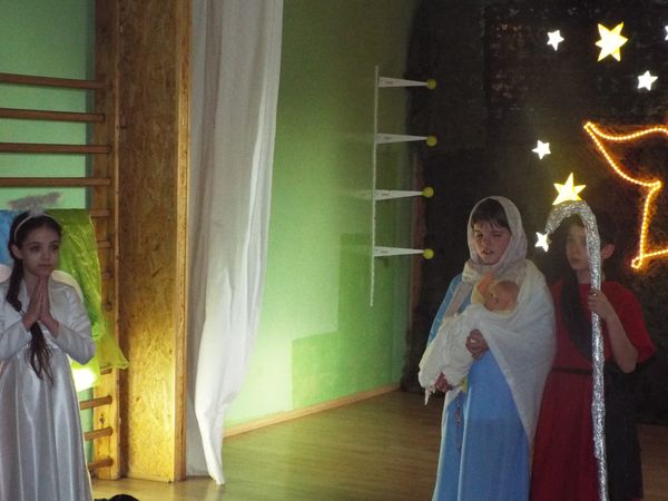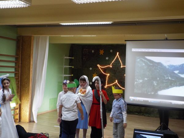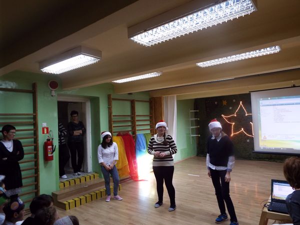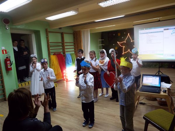 Radosny nastrój świąt Bożego Narodzenia towarzyszył na dzisiaj od rana. Najmłodsi uczniowie naszej szkoły przygotowali krótkie przedstawienie, wprowadzając nas wszystkich w czas świętowania. Najpierw obejrzeliśmy ich występy i posłuchaliśmy przygotowanych kolęd i pastorałek, następnie pani dyrektor złożyła wszystkim uczniom, nauczycielom, pracownikom i rodzicom życzenia świąteczne. Był czas na przełamanie się opłatkiem i wspólne biesiadowanie.