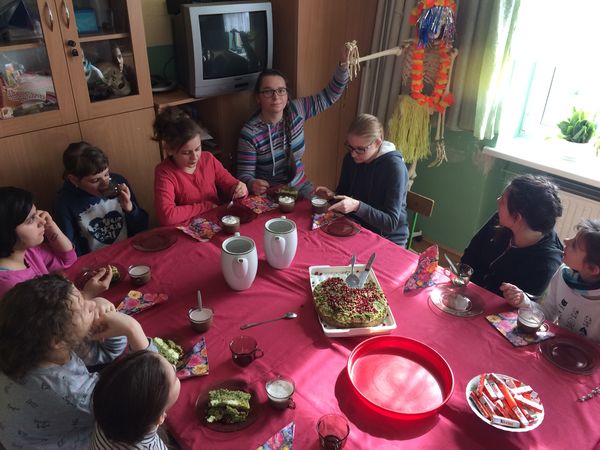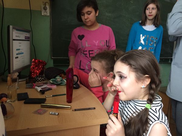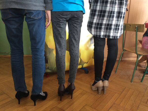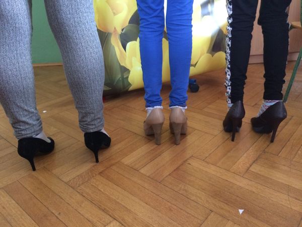 Tym razem Dzień Kobiet świętowałyśmy w gronie samych … kobiet. Spotkałyśmy się przy stole, żeby miło pogawędzić o „babskich sprawach”. Tematem wiodącym były szpilki, kosmetyki i garderoba. Bawiłyśmy się świetnie, ćwiczyłyśmy chodzenie na wysokich obcasach, robienie makijażu, pozowanie do zdjęć a nawet podnoszenie ciężkich hantli. Częstowałyśmy się pysznym i zdrowym zielonym ciastem, które upiekła Pani Sławka oraz innymi smakołykami. Oby każdy dzień w roku był taki przyjemny!