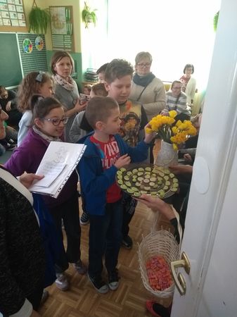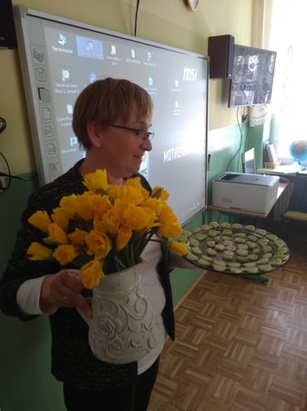 Każdy Uczeń obdarowany został żonkilem, aby dobrze mógł zapamiętać miło ten dzień.
