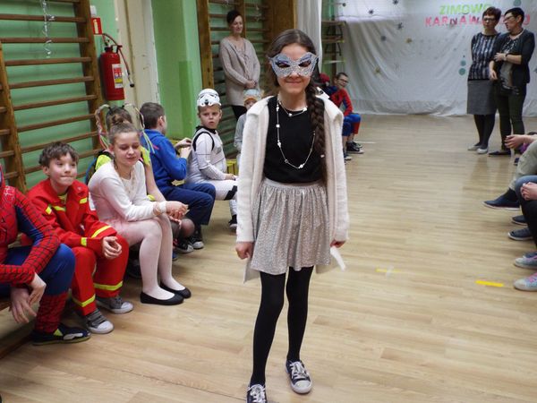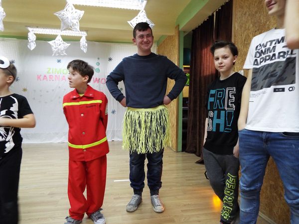 Pierwszy semestr nauki zakończyliśmy... szałowo! 26 stycznia Samorząd Szkolny zorganizował bal karnawałowy. Oprócz dyskoteki, mieliśmy mnóstwo zabaw i konkursów. Obowiązkowo wybieraliśmy królową i króla balu. Zostali nimi w tym roku Wiktoria i Błażej z 4 klasy. Uczyliśmy się także wszyscy tańczyć "Chocolate". Dla uczniów klas starszych odbył się konkurs na najpiękniejszą maskę karnawałową: I miejsce zajęła Irena Lorek, II – Karol Drozdek, miejsce III – Kamil Moszyński.