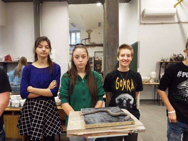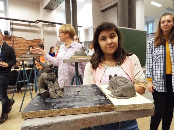 12 października uczniowie klasy III Gimnazjum i klasy VII SP uczestniczyli w warsztatach rzeźbiarskich w Zespole Szkół Plastycznych w Bielsku-Bialej. Gościli nas uczniowie IV klasy wraz z opiekunem. Miła, gościnna wręcz rodzinna atmosfera sprzyjała twórczej pracy i nawiązaniu nowych kontaktów. W czasie wolnym, nasi uczniowie i opiekunowie (nauczyciele) zaznajomili gospodarzy z podstawami jezyka migowego. Dla wszystkich uczestników było to nowe, ciekawe doświadczenie. Serdecznie zapraszamy plastyków do nas.