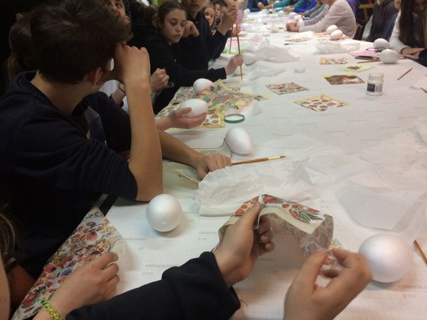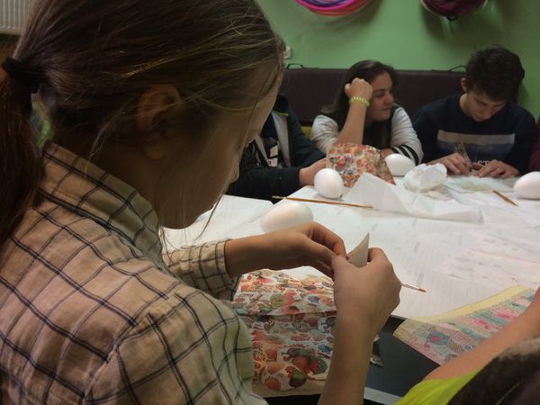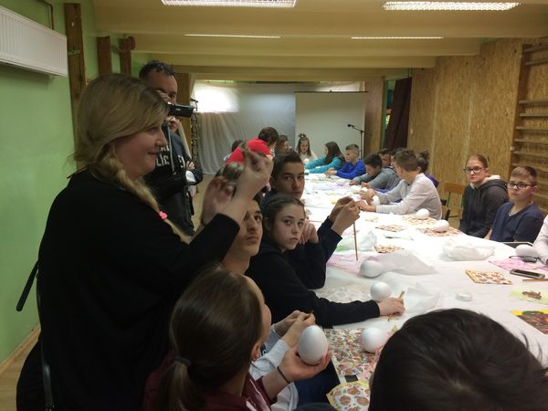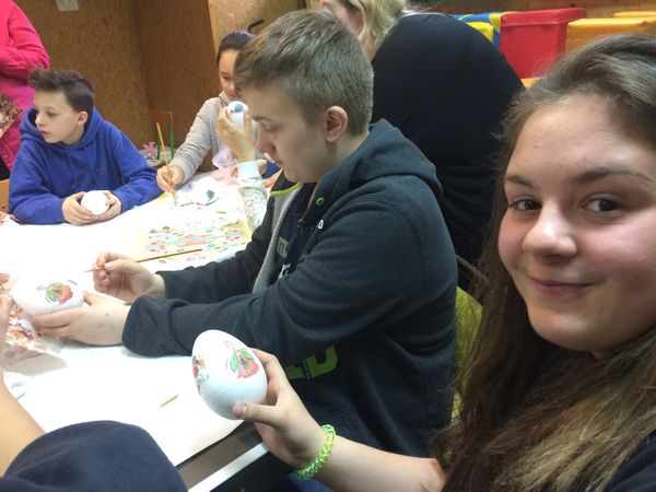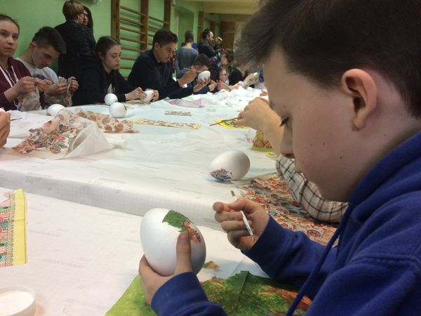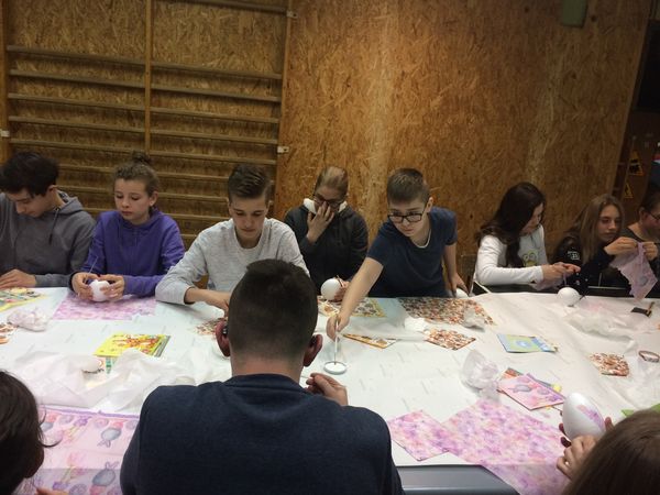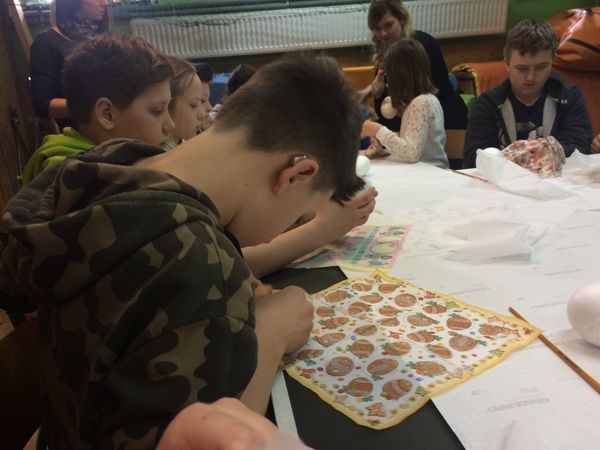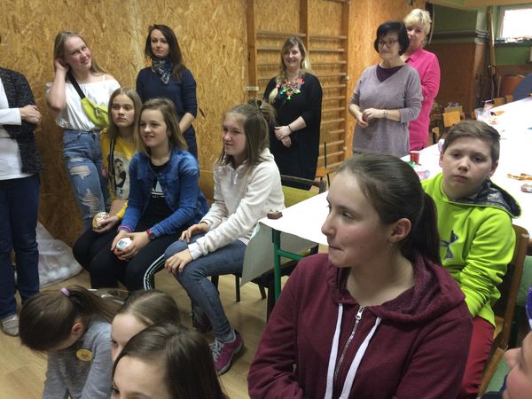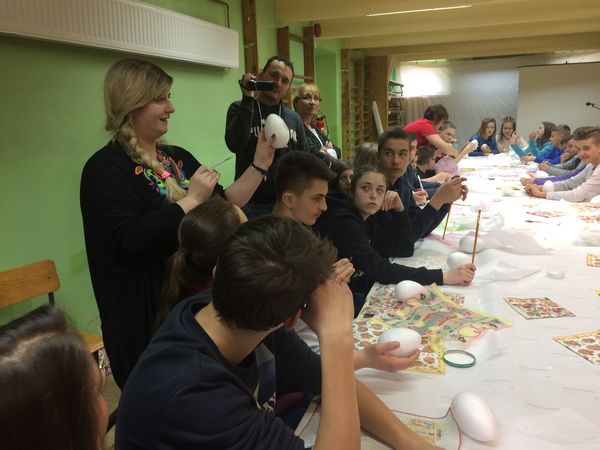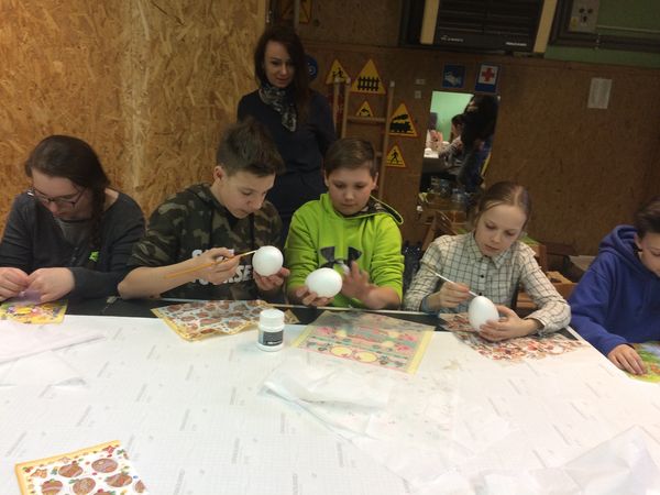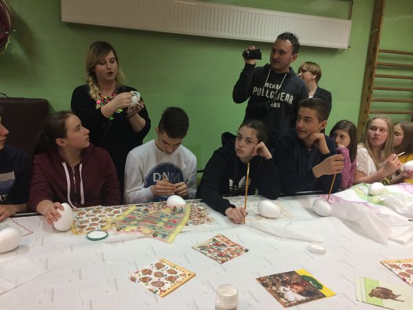 Ciekawą formą spędzenia wspólnego czasu było malowanie jajek techniką deocupage, którą zaprezentowali nasi goście.
