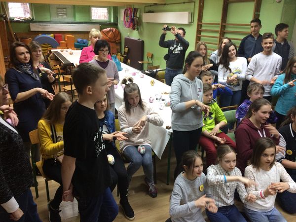 Na zakończenie wspólnego spotkania zaśpiewaliśmy i zamigaliśmy hymn naszej szkoły szkoły, który tak się spodobał, że nasi koledzy uczyli się migać wspólnie z nami refren.