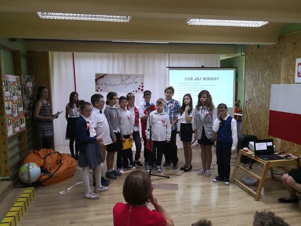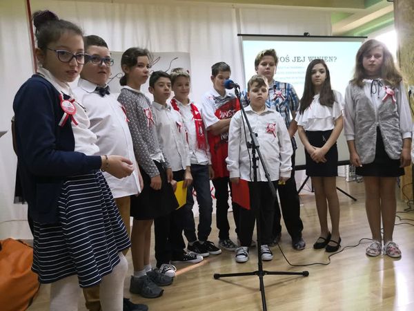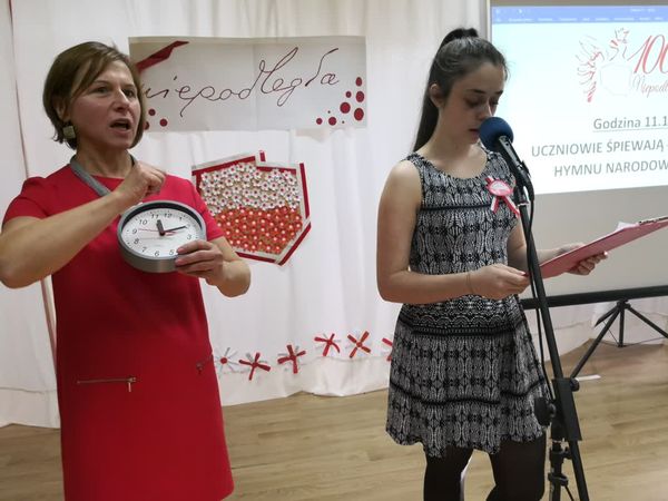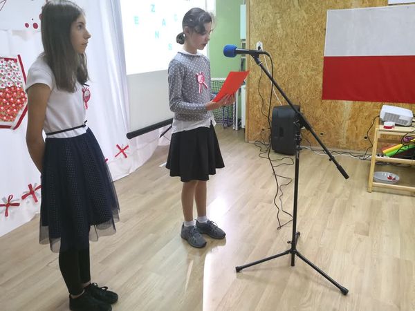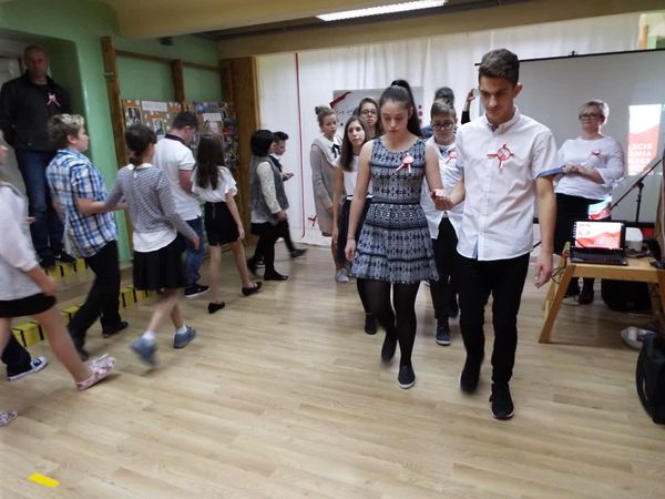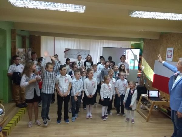 Później odbyła się uroczysta akademia, przygotowana przez uczniów, podczas której śpiewaliśmy pieśni patriotyczne, a najstarsi uczniowie zatańczyli najbardziej polski ze wszystkich tańców: poloneza.