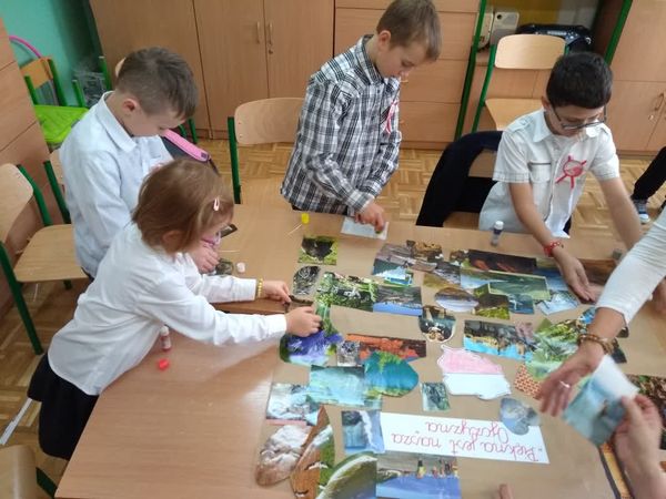 Zaczęliśmy ten dzień od udekorowania sali gimnastycznej planszami i plakatami, obrazującymi piękno naszej ojczyzny. Każda klasa przygotowała plakat na wybrany temat: zaprezentowaliśmy piękne polskie krajobrazy, wspaniałych Polaków, jakich znamy z historii, wybitnych polskich sportowców, których zna cały świat.
