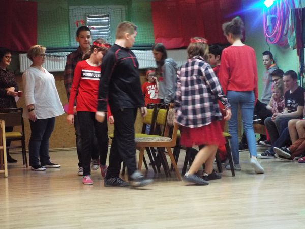 Świętowanie Dnia Zakochanych dbyło się w naszej szkole podczas balu karnawałowego. Było mnóstwo różnych zabaw, związanych z karnawałem i Walentynkami. Serduszkowe dekoracje na każdym kroku przypominały nam o tym wesołym, miłym święcie.