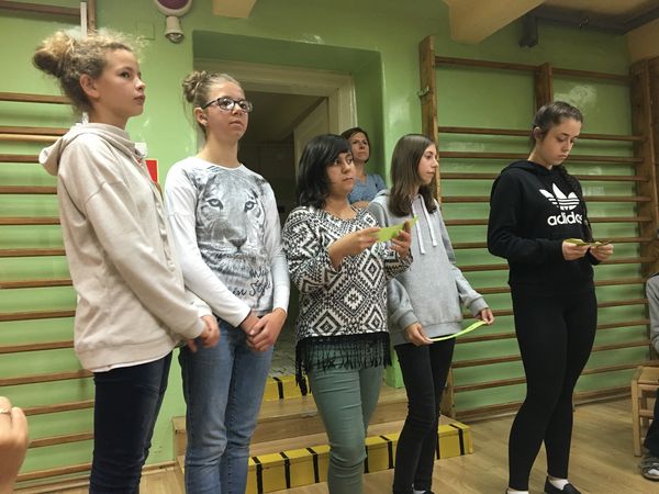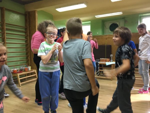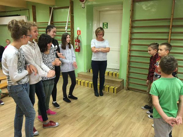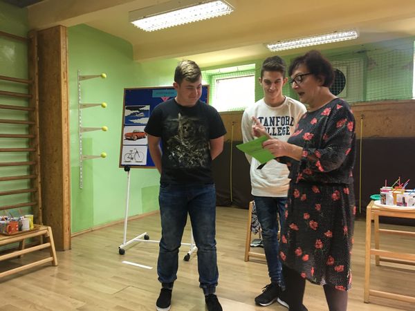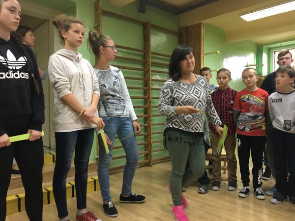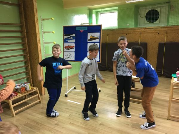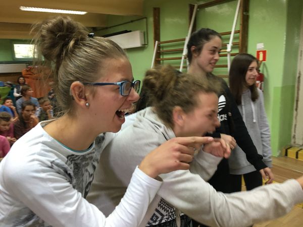 Zebraliśmy się wszyscy na sali gimnastycznej, aby w zabawny sposób uczcić święto naszych kolegów.
