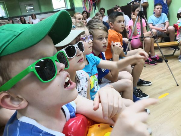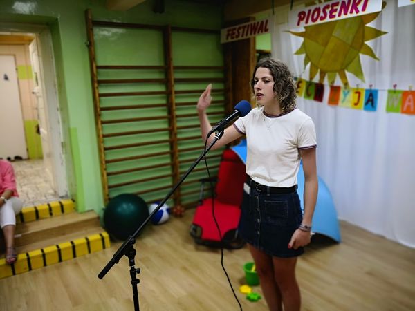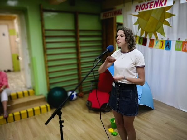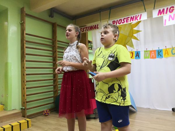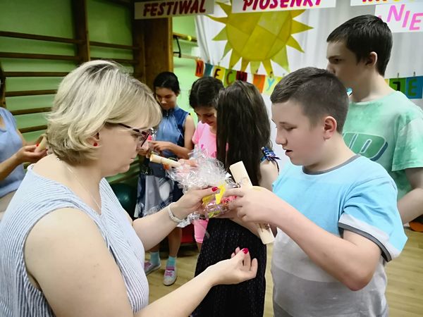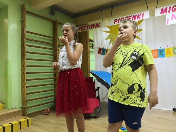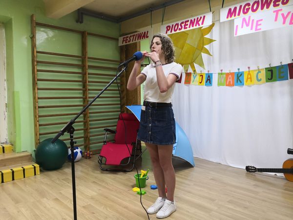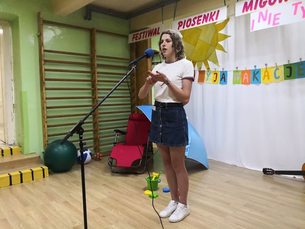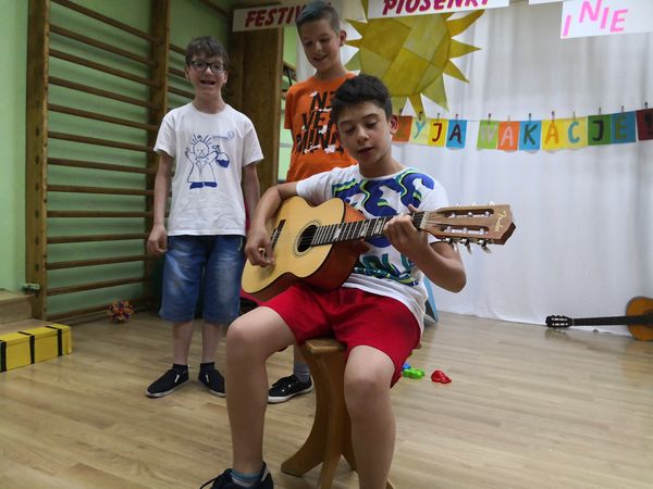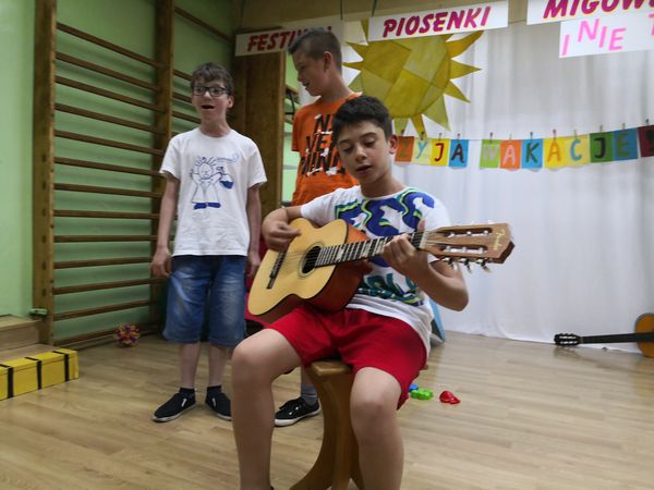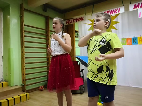 Kolejny już raz spotykamy się, aby wspólnie – śpiewając...migając...i klaszcząc – bawić się przy muzyce w rytm znanych i lubianych przebojów. Tegoroczny festiwal swoim hasłem: „Niech żyją wakacje!” wprowadził nas już w wakacyjny nastrój. Trzeba przyznać, że nasz festiwal wciąż się rozwija, bo oprócz piosenek migowych, od których zaczynaliśmy kilka lat temu, są już w naszym repertuarze utwory wykonywane przez wokalistów i zespoły. Mamy przyjemność również gościć wykonawców spoza naszej szkoły. W tym roku były to uczennice z VIII LO w Bielsku-Białej: Paulina, Kamila, Celina, Patrycja i Natalia, które również uczą się języka migowego i wspaniale prezentują go w formie piosenek. Cieszymy się i jesteśmy dumni, że muzyka łączy nas właśnie w taki sposób.