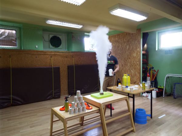 Mieliśmy również okazję obejrzeć ciekawy pokaz eksperymentów i ciekawostek fizycznych i chemicznych, przygotowanych przez specjalistów z Fabryki Kreatywności.
