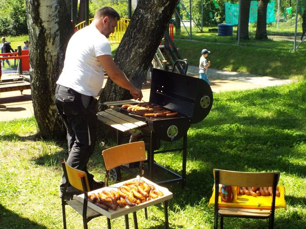 Na zakończenie – jak na prawdziwy piknik przystało – było jedzenie kiełbaska z grila i słodki poczęstunek: ciasta upieczone przez naszych rodziców.