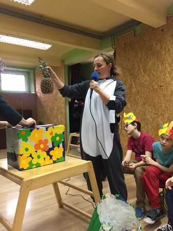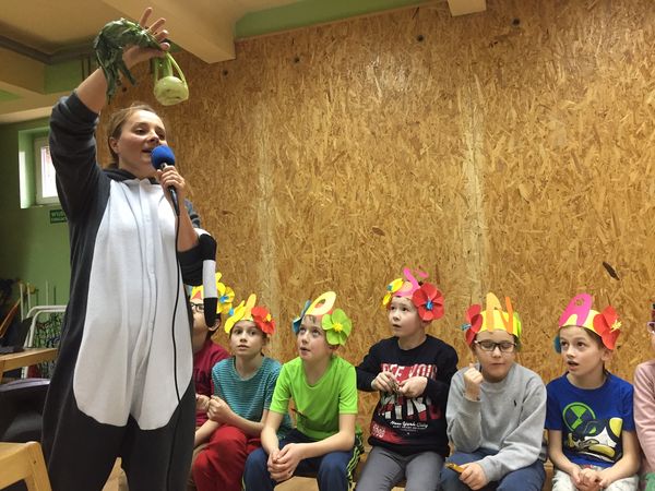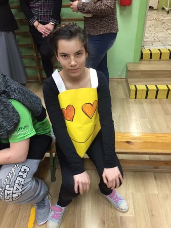 Od razu zaczarowała naszych uczniów tak, że wskoczyli w bajecznie kolorowe, wesołe stroje, przyniosła smaczne, kolorowe warzywa, soczyste owoce. A na koniec…ugościła nas pyyyszną pizzą.