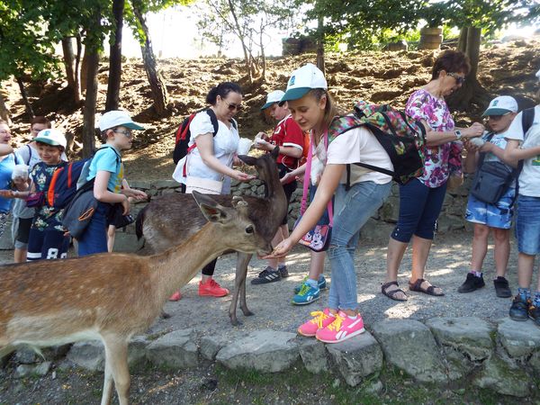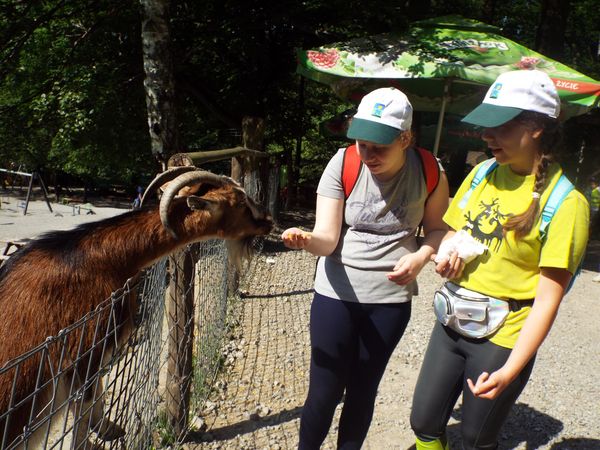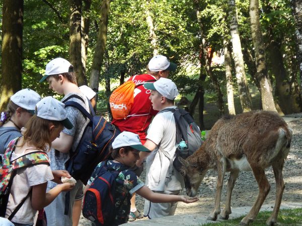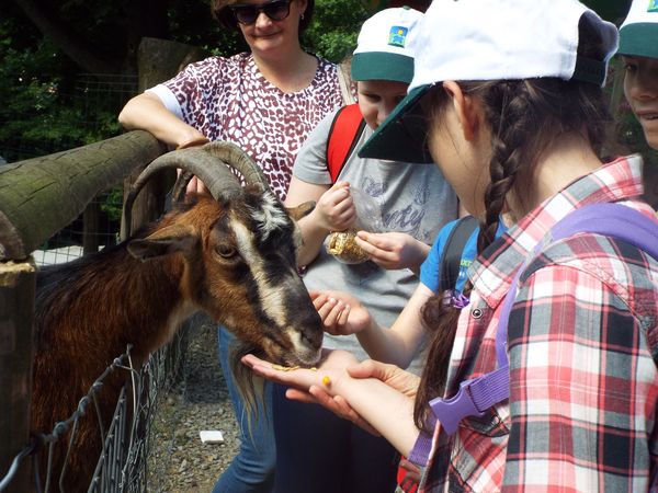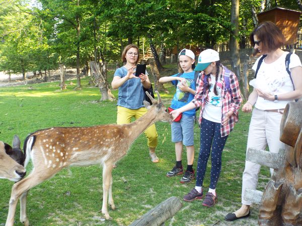 Nasza wizyta w parku rozpoczęła się od wspólnego spaceru, podczas którego mieliśmy możliwość z bliska poznać, a nawet dotknąć i nakarmić wiele nieznanych nam dotychczas gatunków zwierząt.