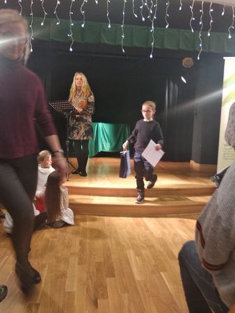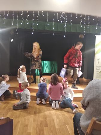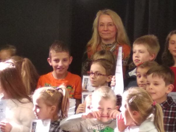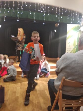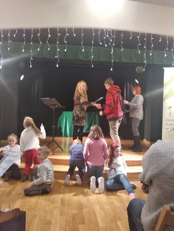 W dniu 4 grudnia br. w Domu Kultury Olszówka odbyło się uroczyste rozdanie nagród i dyplomów, na którym obecni byli laureaci, ich Rodzice i nasze koleżanki pani Ola i pani Asia. Było bardzo pięknie i miło. Obejrzeliśmy przedstawienie