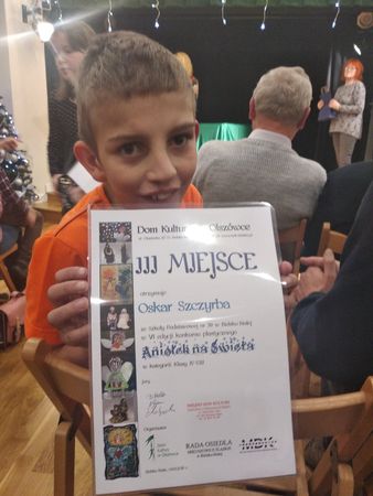 Gabrysia Szlagóra z kl.3 - wyróżnienie, Oskara Szczyrby z kl.5 – III miejsce, którzy wykonali prace pod kierunkiem p. Aleksandry Wojdylak oraz Jarka Biłka z kl.7 – III miejsce pod kierunkiem p. Joanny Skowron. Jak co roku Jury oceniało pomysłowość, samodzielność wykonania adekwatną do wieku autora.