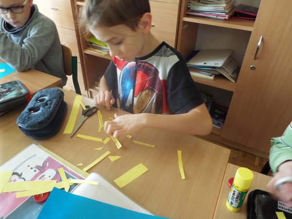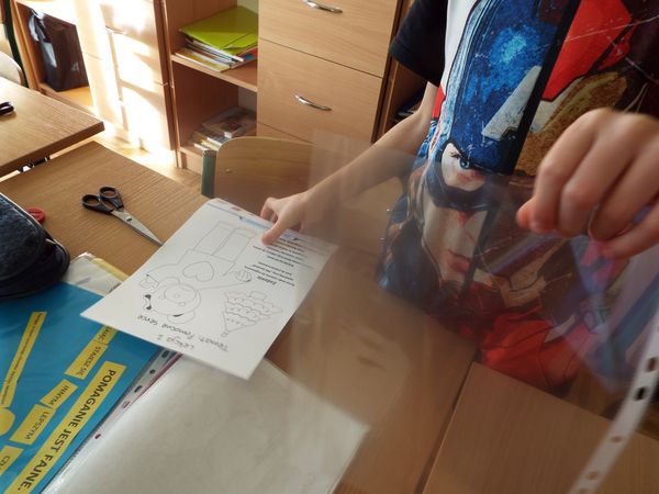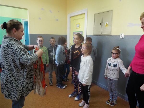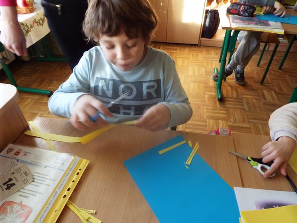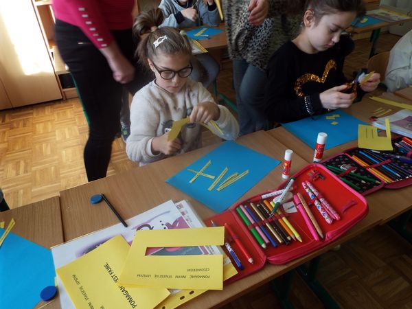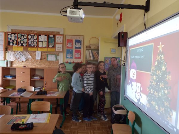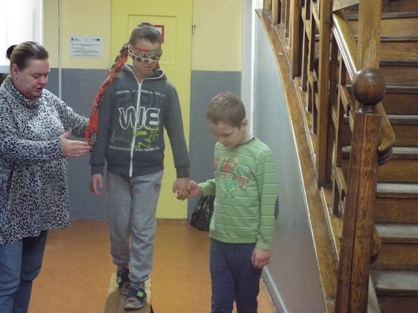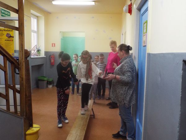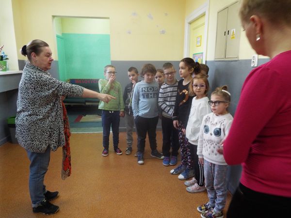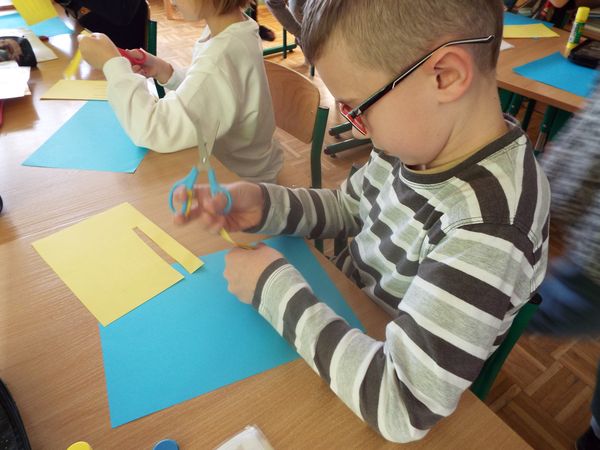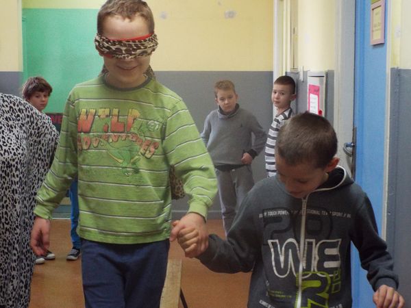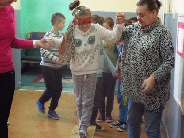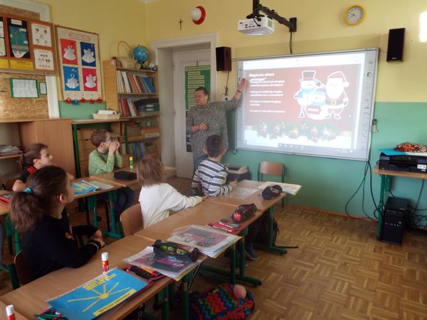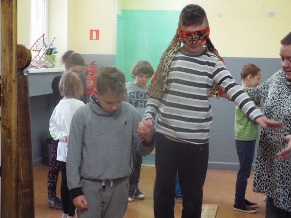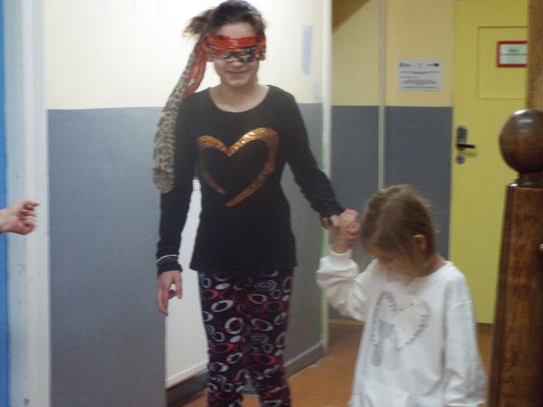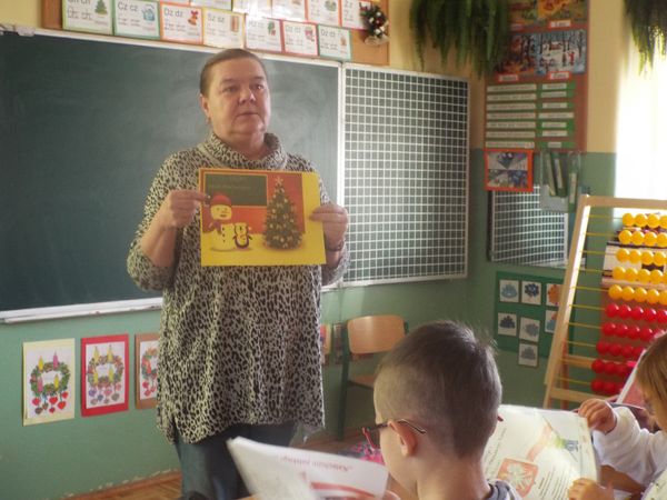 W dniu 16.12.2019 r. przeprowadzono 2 lekcje w klasach I-III af oraz klasie II ns w ramach projektu „Dzieci uczą rodziców”. Temat lekcji – Pomocne serce. W zajęciach brało udział 9 uczniów. Podczas zajęć uczniowie przeprowadzili doświadczenie na ławeczce gimnastycznej (po połączeniu się w pary mieli za zadanie wzajemne przeprowadzenie się po ławce z zawiązanymi oczami). Doświadczenie miało na celu uzmysłowienie uczniom: Co jest lepsze? Czy pomagać innym, czy też korzystać z pomocy? Uczniowie prawidłowo odczytali sygnały i wyciągnęli wnioski. Następnie przeprowadzono burzę mózgów: Na czym polega pomoc? Dlaczego należy pomagać innym? Jak możemy pomóc innym? Potem wspólnie w kole zaśpiewano piosenkę „Pomagam, bo lubię”. Na zakończenie zajęć każdy z uczniów wykonał plakat zatytułowany „Pomaganie jest fajne”. Na niebieskiej kartce symbolizującej niebo nakleił żółte koło oraz promienie słoneczne na których wypisał, dlaczego należy pomagać. Jako zadanie do domu uczniowie otrzymali obrazek do pokolorowania wspólnie z rodzicami.
