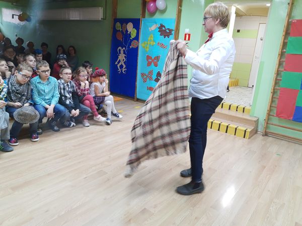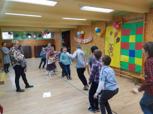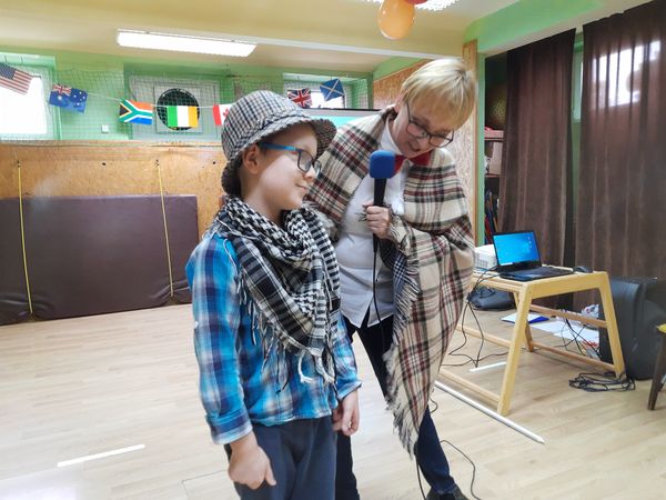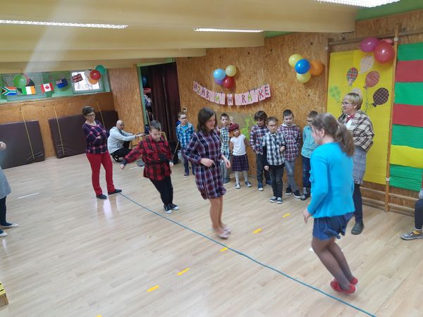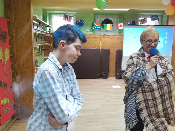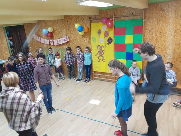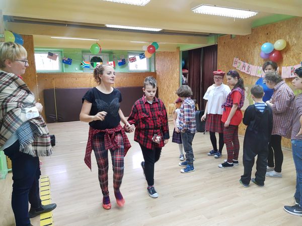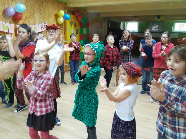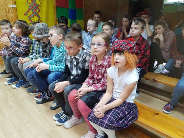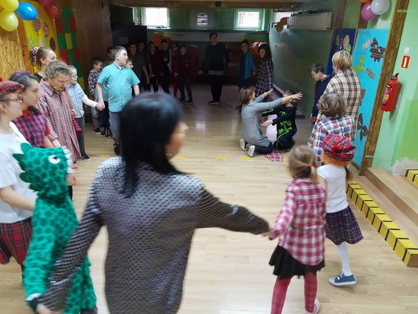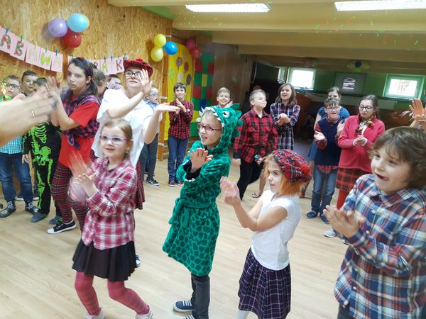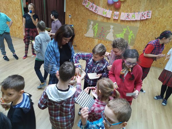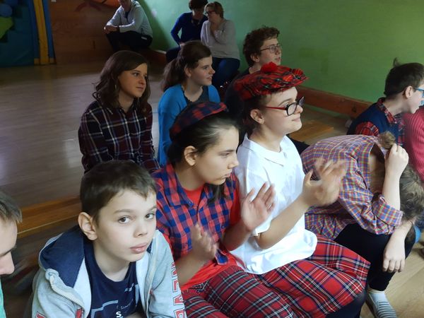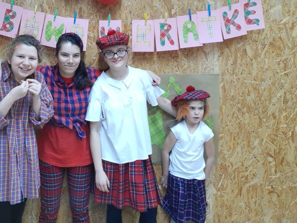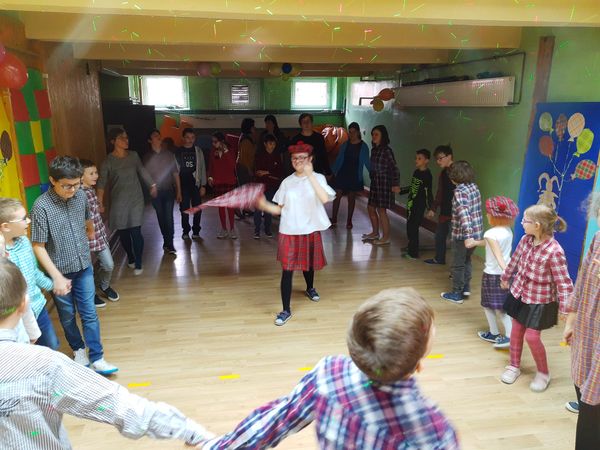 W tym rok zabawa karnawałowa w naszej szkole była “Zabawą w kratkę” ponieważ po raz pierwszy połączona była ze świętem Szkocji, przygotowanym przez naszą panią anglistkę - panią Monikę.