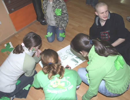 Święty Patryk to patron Irlandii. Ten dzień obchodziliśmy 17 marca – były konkursy, przebieraliśmy się w zielone ubrania, tańczyliśmy irlandzki taniec i jedliśmy zielone, pistacjowe orzeszki.