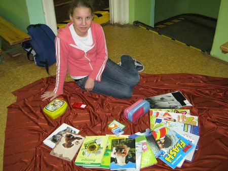 naszych plecaków się znajduje. Wiadomo: książki, zeszyty, przybory
