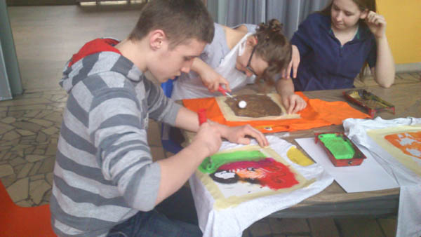 W bieżącym roku szkolnym z klasami gimnazjalnymi odwiedziliśmy tradycyjnie Bielską Galerię BWA. Uczniowie wykonywali odbitki na koszulkach z wykorzystaniem szablonu. Każda klasa wybrała inny kolor koszulek. Dzieci według własnego pomysłu wypełniali szablony farbą akrylową. Zwiedzaliśmy również bieżącą wystawę Galerii - "50 lat z fotografią" Andrzeja Baturo. A na koniec były pyszne lody w Delicji...